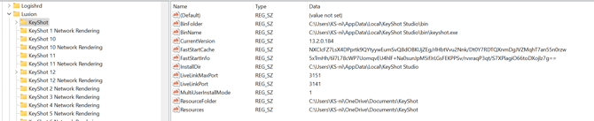 "BinFolder"="C:\\Users\YOUR USERNAME\AppData\\Local\\KeyShot Studio\\bin"