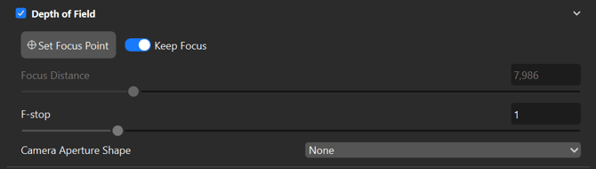 In the Camera Tab, there is a new Depth of Field function to Keep Focus.