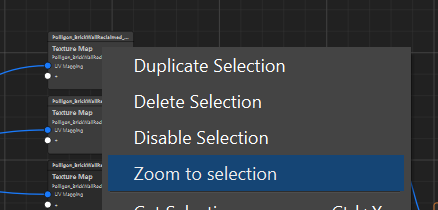 - A new “Zoom to Selection” feature adjusts both position and zoom level to the selected node(s) by making the selection, right-clicking and choosing "Zoom to Selection".