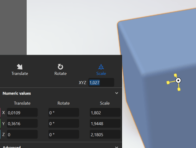 Uniform scaling of objects can now be done by holding Shift, which will mark the scale gizmos yellow, and then dragging any axis scale handles.