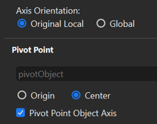 Use the Original Local as the Axis Orientation and make sure Pivot Point Object Axis is checked.