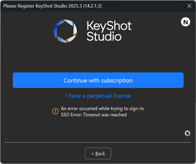 When trying to activate KeyShot Studio, you may get an SSO Error: Timeout was reached