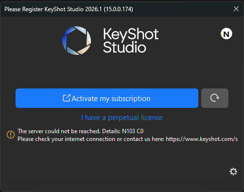 When activating KeyShot Studio using a proxy, the error N103 C0 may occur